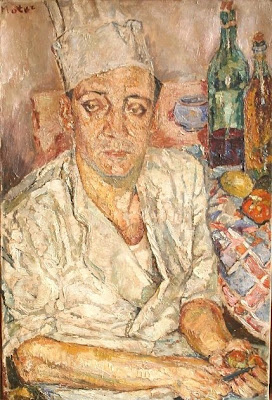 This is Emile Verdet, owner of "Le Coq Hardi" and later the restaurant "Verdet" in Avignon, France. When Muter was seeking refuge in Avignon during the Second World War, she and other impoverished artists ate at Emile Verdet's restaurants. Put up for sale last year, the painting has been in the Verdet family since it was painted and given to Emile, in lieu of payment for a meal.